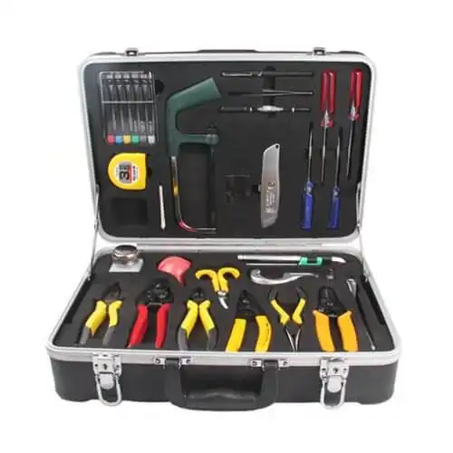 This page features a variety of fiber optic tool kits. There are installation kits with tools for cutting, stripping, and joining fibers. Grinding kits help in polishing fiber components. Cleaning kits keep fiber connections clean. FTTH kits are designed for home fiber installations. Models like SPTK-610A and SPTK-930A offer different tool combinations. Suitable for both professionals and DIY enthusiasts in the fiber optic industry.